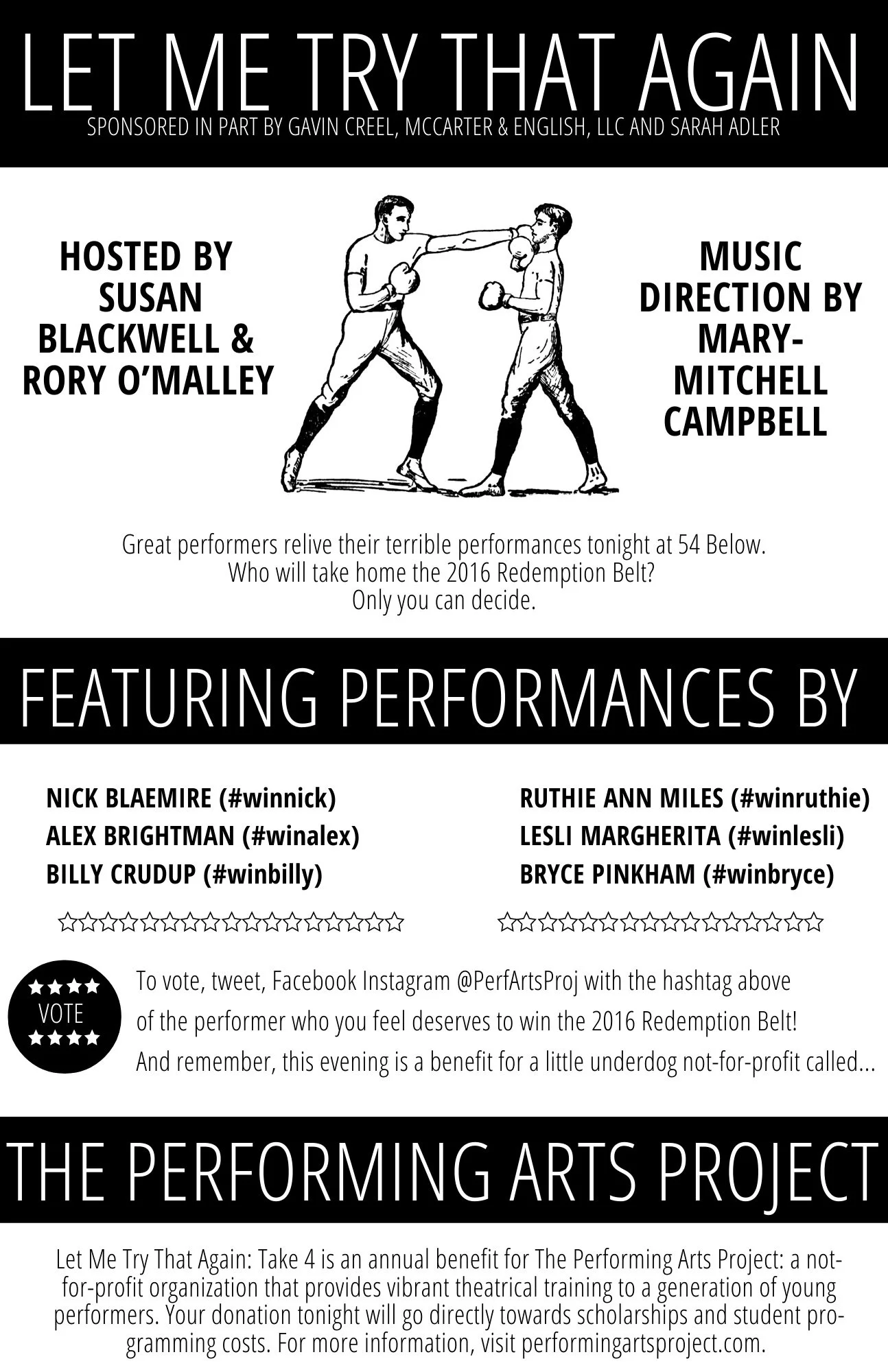 A few favorites include The Performing Arts Project’s Blueprint, Compass, and Panorama summer theater programs, Upstage Left, a live-online interview and artistic challenge with guests including Broadway performers Laura Benanti, Gavin Creel, Montego Glover, Kelli O'Hara, Isaac Powell, Krysta Rodriguez, Elizabeth Stanley, and more; the annual island-wide fundraiser the 72-Hour Film Challenge in Key West; Let Me Try That Again at 54 Below in NYC